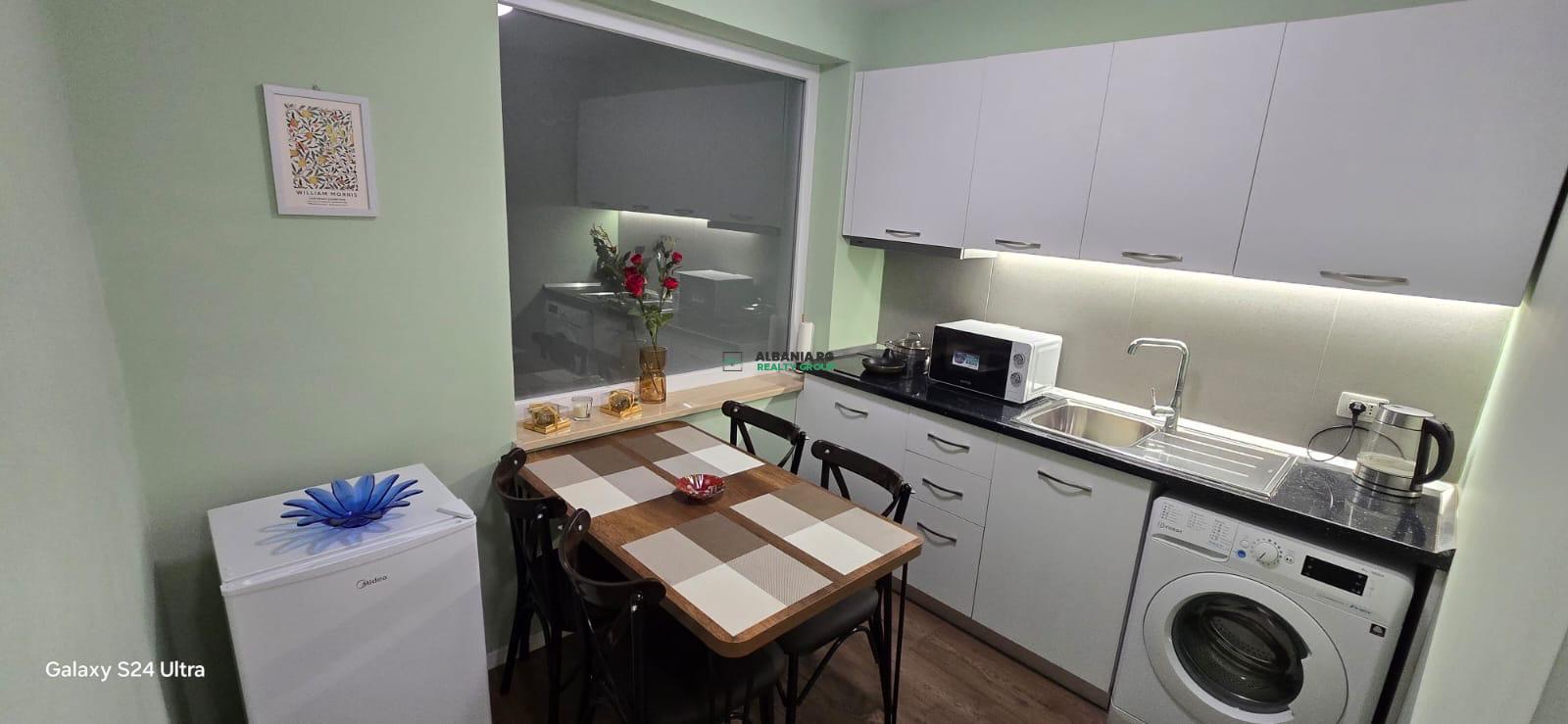 Ky ambjent eshte i organizuar nga dy dhoma gjumi ,sallon dhe nje kuzhine te vecuar .