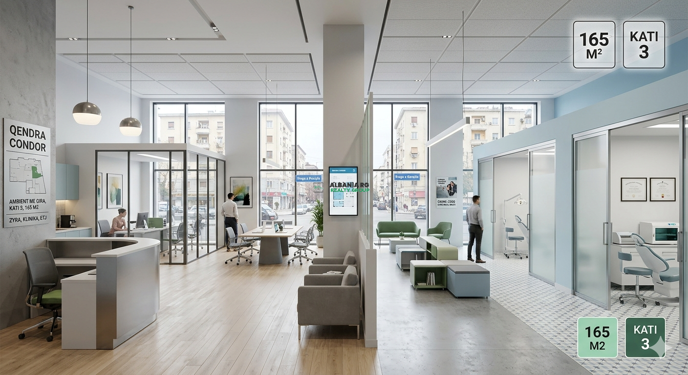 Ambjent me qira per zyra, klinika etj. Tek qendra Condor rruga kavajes 165 m2 Kati 3 Cmimi 2300 euro/muaj bruto